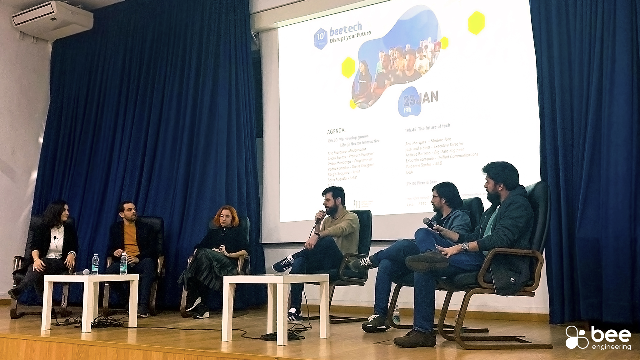 [vc_row type="in_container" full_screen_row_position="middle" column_margin="default" scene_position="center" text_color="dark" text_align="left" overlay_strength="0.3" shape_divider_position="bottom" bg_image_animation="none"][vc_column column_padding="no-extra-padding" column_padding_position="all" background_color_opacity="1" background_hover_color_opacity="1" column_link_target="_self" column_shadow="none" column_border_radius="none" width="1/1" tablet_width_inherit="default" tablet_text_alignment="default" phone_text_alignment="default" overlay_strength="0.3" column_border_width="none" column_border_style="solid" bg_image_animation="none"][vc_column_text]A edição 10ª do Bee Tech, o fórum tecnológico da Bee Engineering, decorreu no ISTEC - Instituto Superior de Tecnologias Avançadas no da 23 de janeiro.